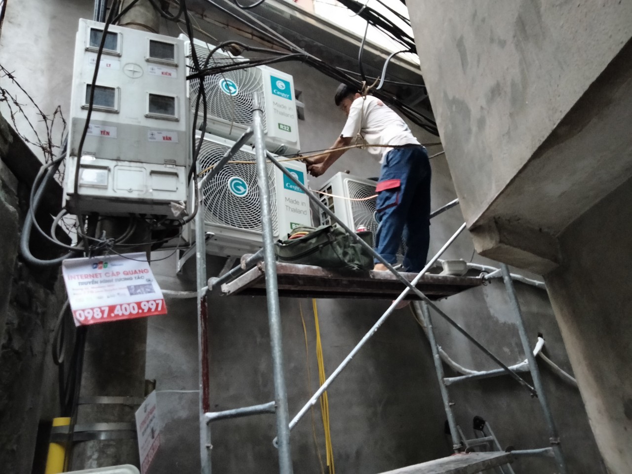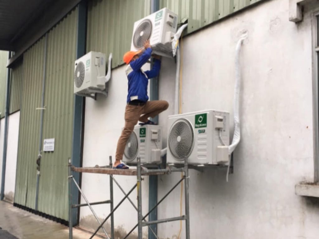 - Lắp giá giàn nóng ( Treo thang dây nếu cần )